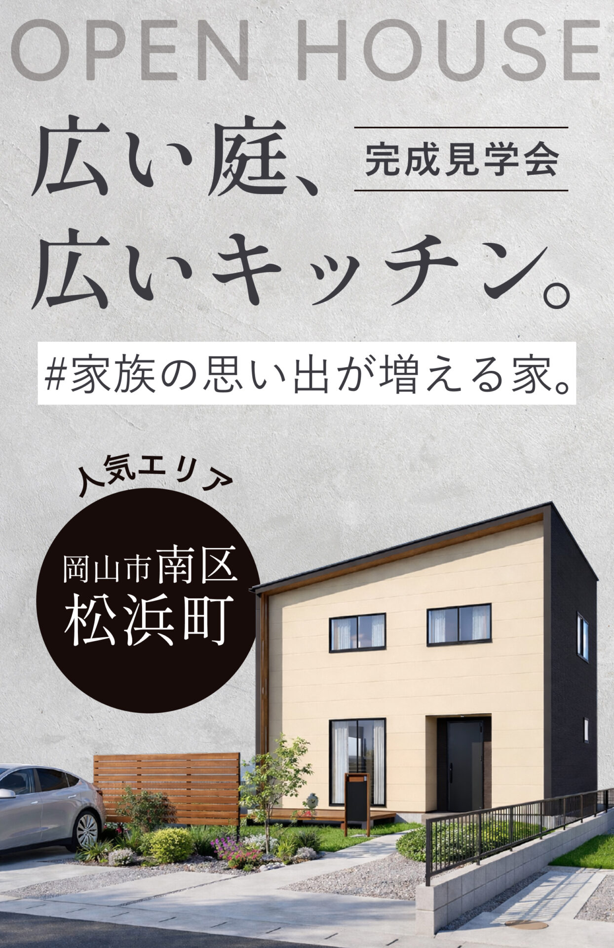 【岡山市南区松浜町】広い庭、広いキッチン ~家族の思い出が増える家 〜 完成見学会
