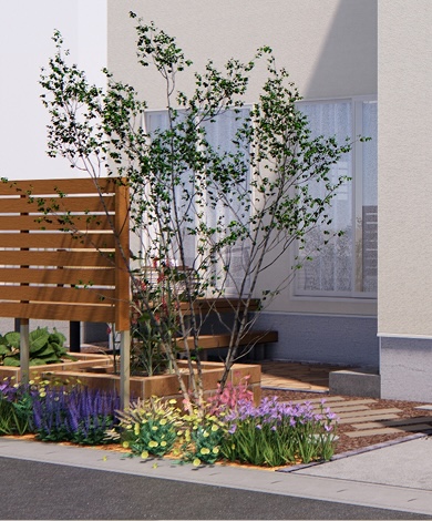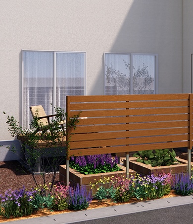 ※本写真は一部 CG加工を施しており、植物・家具等はイメージです。※ウッドテラスはオプション工事となります。