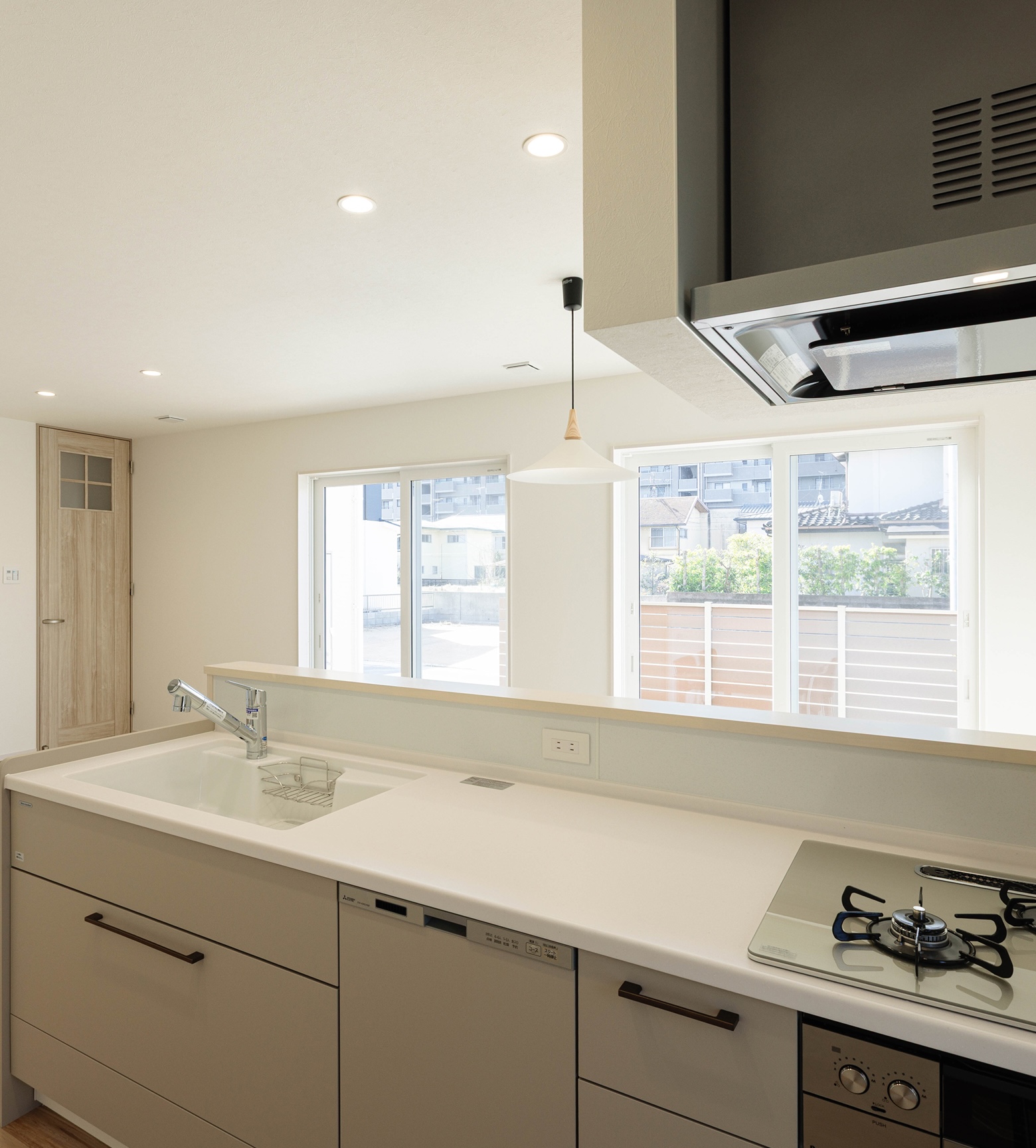 食後は食洗機付きのシステムキッチンで洗い物の手間要らず。