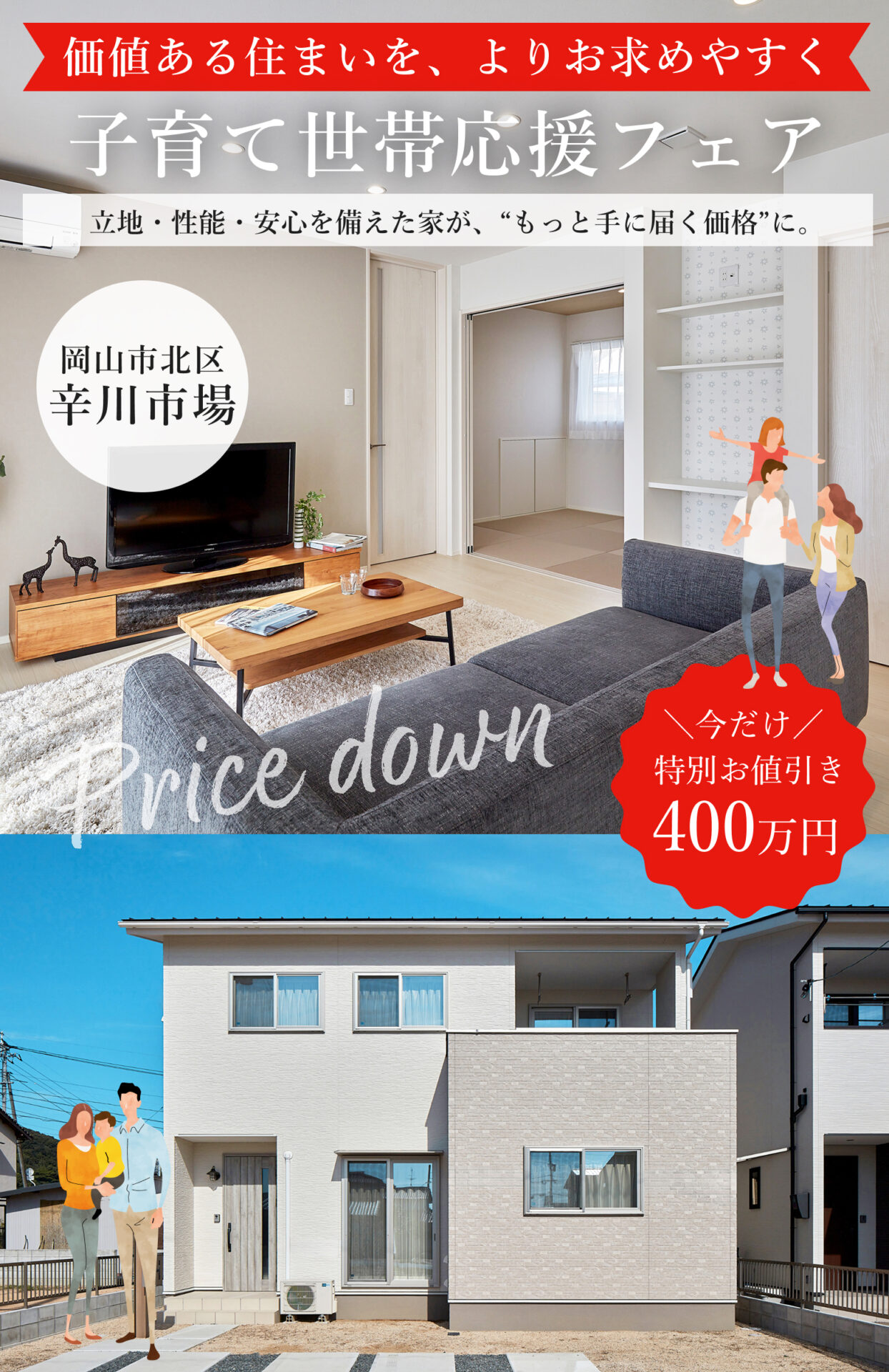 【岡山市北区辛川市場】価値ある住まいを、よりお求めやすく。子育て世帯応援フェア