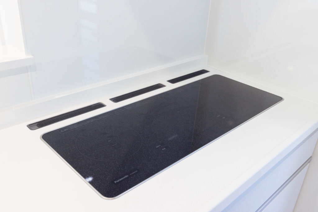 3連IHだから横に広く使えて、隣に立ってもぶつからない。