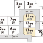備考 ※団地負担金40万円含む。※次の号地には別途、無償譲渡部分を含みます。9号地:2.72㎡/0.82坪。10号地:5.31㎡/1.60坪。