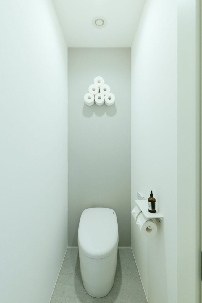 ホワイトを基調にモルタル調の床を合わせた洗練空間。ホテルのような上質さと、施主様のこだわりが詰まったインテリアが調和しています。